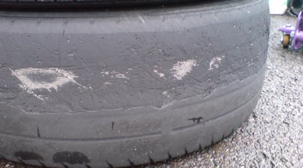 ワイヤーは出てないけど、右タイヤの左半分がスリックになってるのでねw