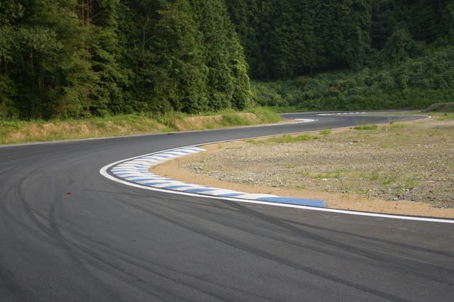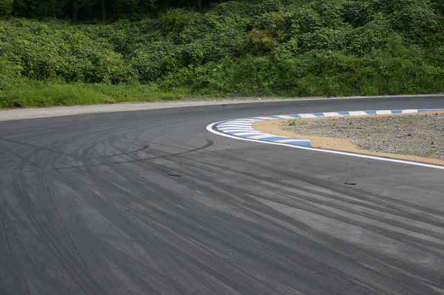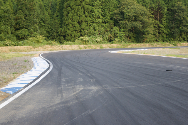 避けて後ろを確認したら、右曲がりのレーンの横にいた。