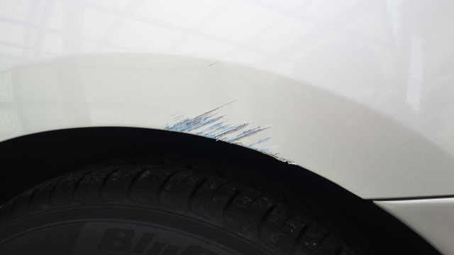 左リアフェンダーをこすったようだ。