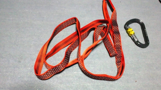 すでに持ってる人に聞いたら、スリングとカラビナで接続したほうが便利ということで。