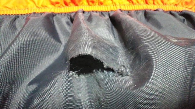 ちなみに破いたのはバイレスので、210デニールらしい。