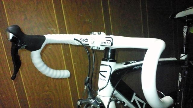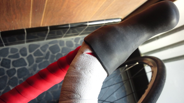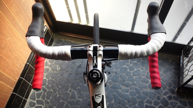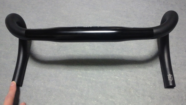 現ハンドルをC-C換算すると約380mmなので、下ハンだと変わらず、ブラケットで狭く。