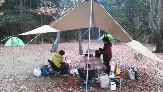 タープが重みで雪下ろししないとヤバかったり。