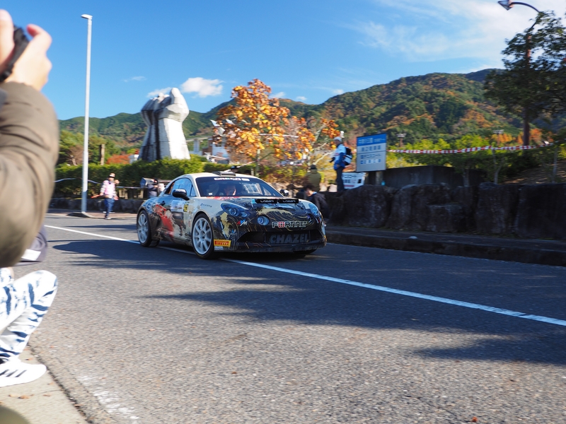通り過ぎるラリーカーを撮りに歩いていたら、しましまが立っていた。